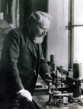Lehmann, Otto, 1855 bis 1922 Professor für Physik an der TH Karlsruhe, nach plötzlichem Tod eines seiner Assistenten wird A. B. sein zweiter Assistent, Forschungen im Bereich der Kristallographie, entdeckt die flüssigen Kristalle, Spitzname „Knall-Lehmann“ wegen der lautstarken Physiklabor-Übungen (Foto 1907 in seinem Labor, TU Karlsruhe, Quelle: Wikipedia)