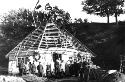 Thomsen, Martine (Tine), 1907 bis 1988, wohnhaft in Tarp, hat den Behms zwischen 1945 und 1956 in der Fischerhütte ausgeholfen, kommt als Zeitzeugin in der SWR-Dokumentation "Der Erfinder mit dem Knall" zu Wort (erzählt, dass Behm nie Geld bei sich hatte und das "gute Essen" mochte) . Foto aus 1952 (Quelle: M. Müller)